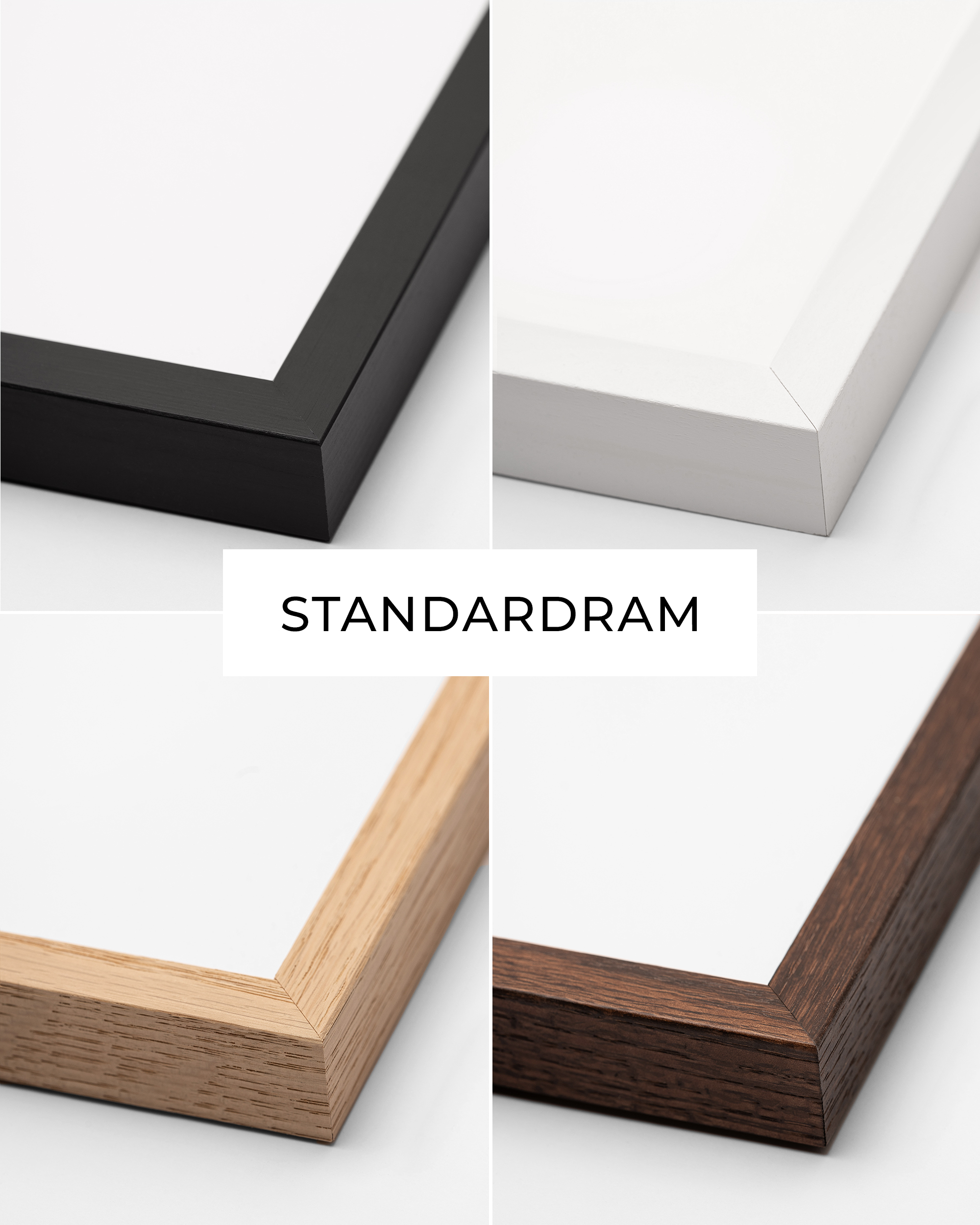 | Ram | Träram Standard – Svart, Träram Standard – Vit, Träram Standard – Mörk Ek, Träram Standard – Ek, Träram Standard – Gul, Träram Standard – Grön, Träram Standard – Blå, Träram Standard – Röd, Träram Standard – Pastellrosa, Träram Standard – Pastellblå, Träram Standard – Pastellila |
